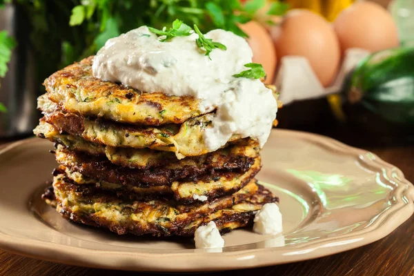 Campur zucchini parut, wortel parut, telur, tepung, dan garam hingga rata. Panaskan wajan dengan sedikit minyak, ambil satu sendok adonan, bentuk bulat, dan masak hingga kedua sisi berwarna keemasan. Sajikan